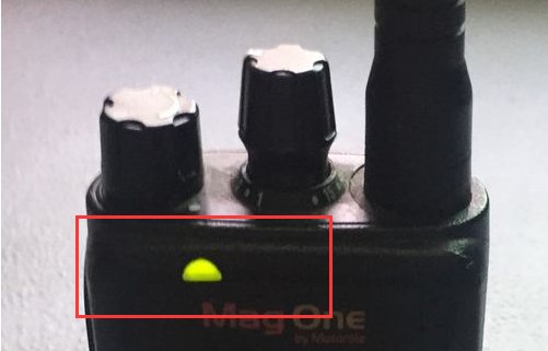 4、当我们接收别人的通信时候,对讲机的指示灯会闪烁为绿色